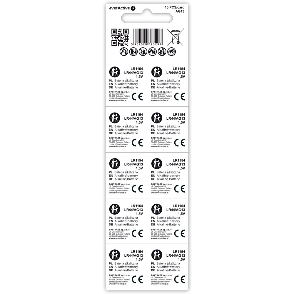 10 piles bouton EverActive AG13 / LR44 / LR1154