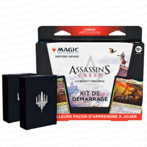 Infiltrez le monde d’Assassin’s Creed et commencez votre initiation au sein de l’Ordre. Préparez-vous pour vos premières parties de Magic avec deux decks sur le thème d’Assassin’s Creed (contenant deux cartes rares mythiques et huit cartes rares). Apprenez les ficelles du jeu grâce au guide inclus, puis plongez dans l’action et décrochez la victoire ! Ce kit de démarrage Magic: The Gathering Assassin’s Creed contient 2 decks prêts-à-jouer de 60 cartes (terrains inclus), 2 boîtes de decks pour les ranger, 1 guide Magic pour apprendre à jouer, 2 cartes de référence recto-verso (Pendant votre tour, Attaquer et Bloquer).